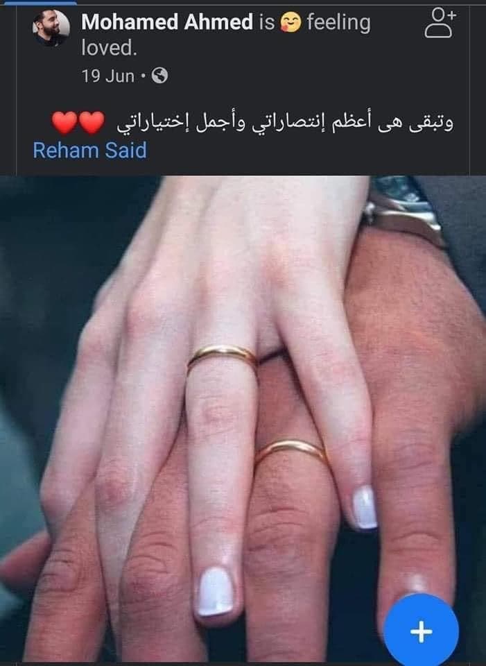 حيث كتب الزوج في إحدى تعليقاته: وتبقى هي أعظم انتصاراتي وأجمل اختياراتي.