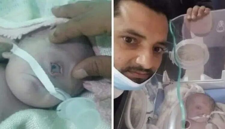 وقال مصدر طبي إن الطفل توفي عقب ساعات من نقله إلى الحاضنة، إذ أن لديه تجويف عيني وعصب بصري واحد.