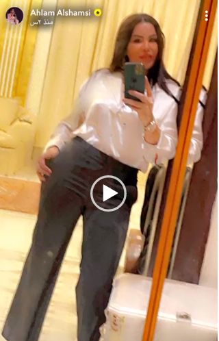 حيث تظهر أحلام في الفيديو بلوك جديد كأنها فتاة عشرينية، ترتدي بنطال أسود وقميص أبيض و أمسكت بهاتفها أمام المرآة.