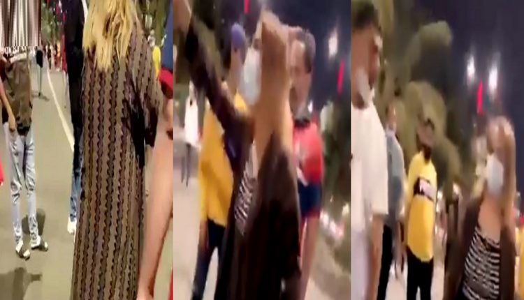 ويظهر المقطع فتاة تهاجم شابًا يقف أمامها، ويبعد عنها أمتار معدودة فقط بعنف وتشتمه بألفاظ خادشة.