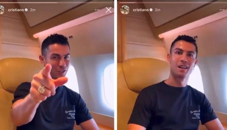 وظهر كريستيانو بفيديو عبر حساباته بمواقع التواصل الاجتماعي وهو في طريقه إلى العاصمة الرياض.