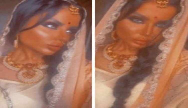 وركزت حليمة بولند في الإطلالة ملابس ومكياج هندي ووضعت نقطة حمراء على جبينها، وقرط كبير في أنفها نقش الحناء.