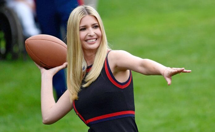 وظهرت إيفانكا بملابس رياضية، وقميص من النوع الثقيل برتقالي اللون، وبنطلون أسود قصير.