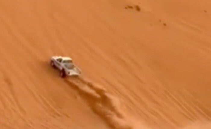 ويتضح من المقطع المصور أن سائق سيارة مركبة “هايلوكس” يصعد على قمة نفود ويتعرض فجأة للانقلاب ويفقد السيطرة عليها.