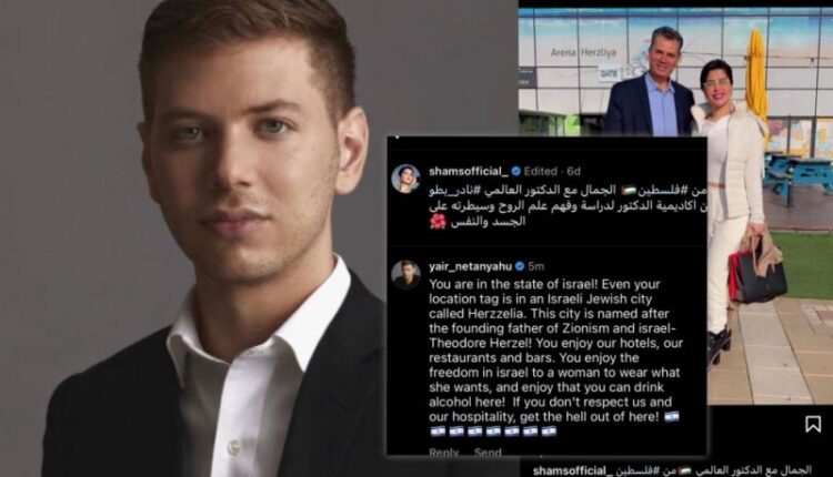 الكويت – رويترد عربي| طرد نجل رئيس الوزراء الإسرائيلي يائير نتنياهو الفنانة شمس الكويتية عقب نشرها صورة برفقة الطبيب بطو بمدينة “هيرتسليا” مرفقة بوسم “من فلسطين”.