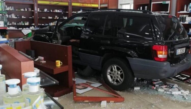 وأظهر مقطع الفيديو لحظة اقتحام السيارة الصيدلية وتحطيمها الواجهة.