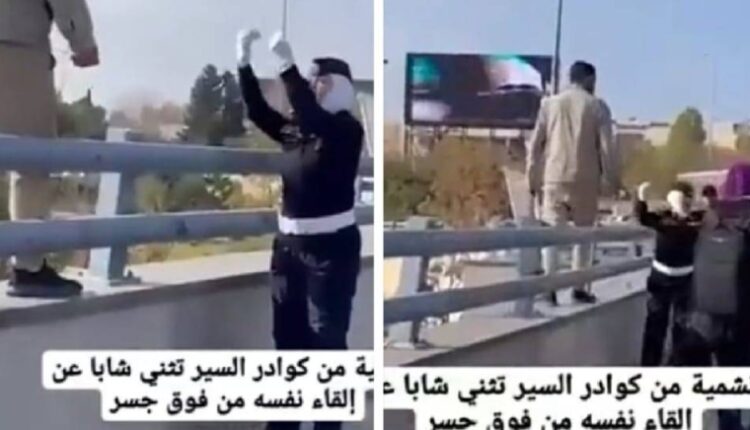 شرطية تمنع شخصًا من الانتحار من أعلى جسر في الأردن