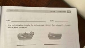 وقالت هيلين: “ليس لدي ولا لدى صديقتي أدنى فكرة عما يحتاج الطفل بالصف الأول إلى تنفيذه بهذا التمرين”.