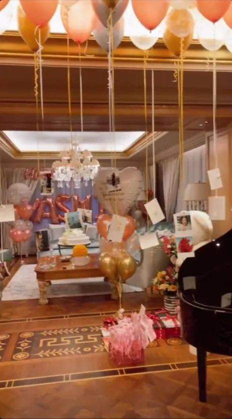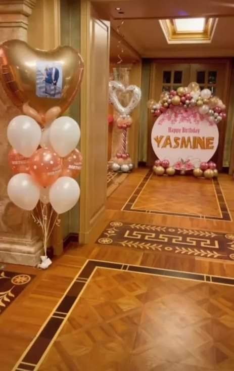 حيث تم تزيين المنزل بالبالونات الملونة والهليوم المطبوع عليها اسمها وصورها والزينة الزاهية التي تحمل صورها وبعض الرسائل أيضا.