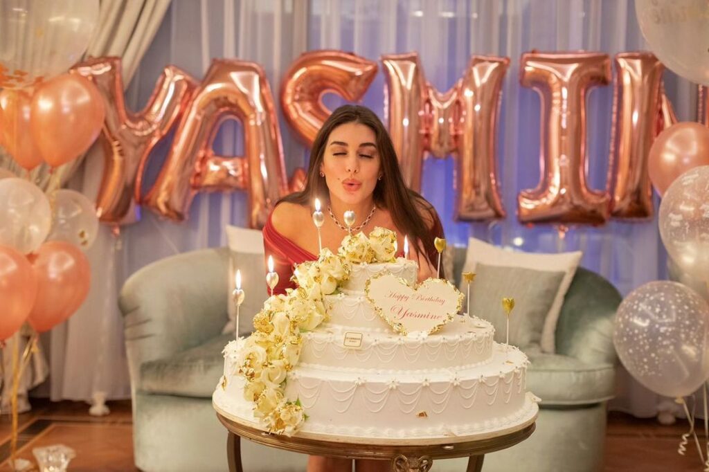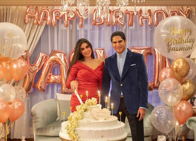 ظهرت ياسمين صبري في الصور وهي على وجهها السعادة والفرحة، وذلك عند استعراض مظاهر الاحتفال بعيد ميلادها الـ 33.