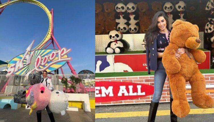 وكان لافتا بالصور أن كليهما تحملان دمية دب فازتا به أثناء زيارتهما لمدينة الملاهي.